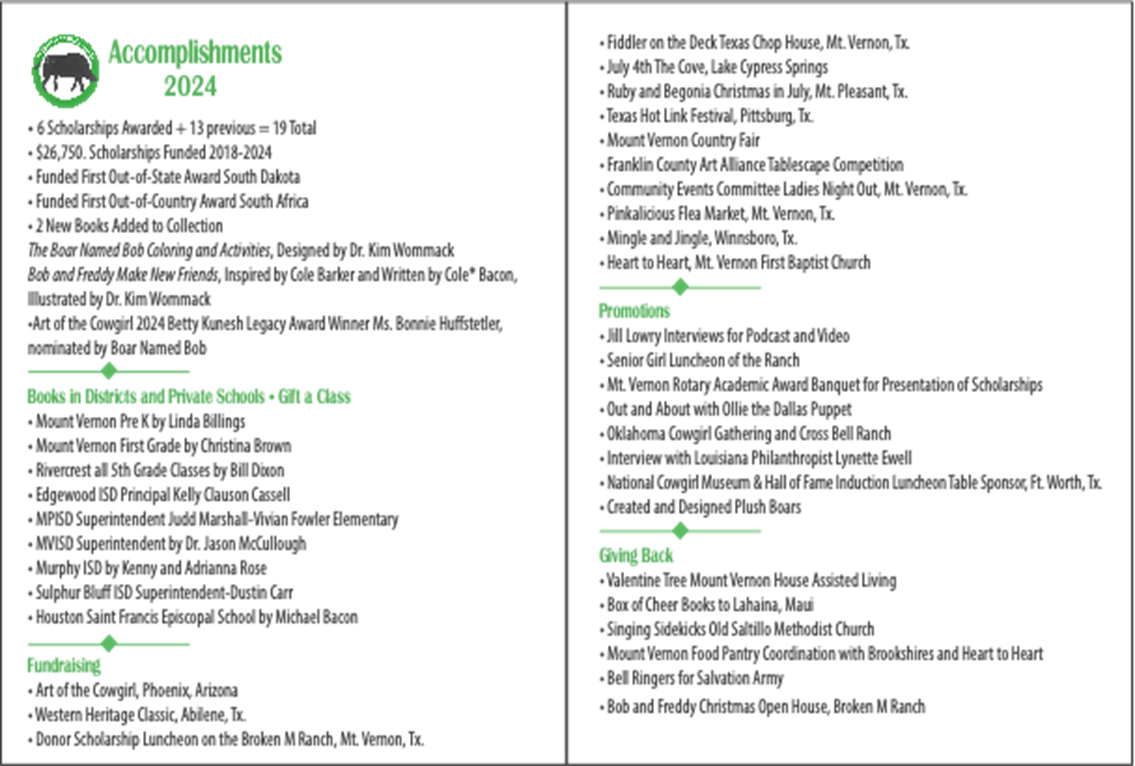 Word got back to Ms. Lawrence of Cole’s passing and, within days of hearing the news, the retired teacher brought a well-worn copy of his book to Cole’s mother, Sue. A year later, Cole’s mother saw another children’s book in a store window and was inspired to help keep Cole’s memory alive. She reached out to a publisher to share his story, the publisher loved it, and “The Boar Named Bob” was born. At the same time, classmates from the Mount Vernon Class of 2000 came together to create the Cole Barker Memorial Scholarship Fund.